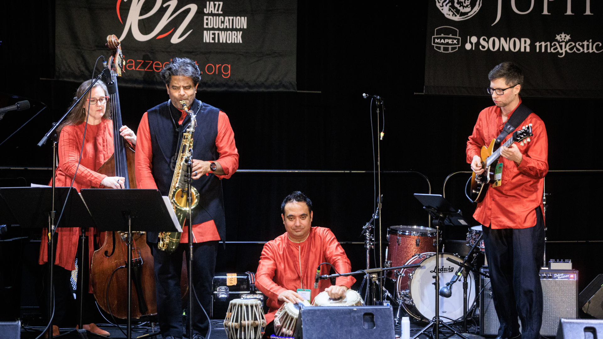 Stage Layout: Please allow enough room for six (5) performers: tabla, saxophone/bansuri (bamboo flute), guitar, bass, and vocalist/dancer. Ensure adequate space in front for any monitors.